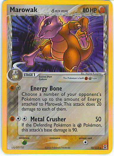 [FM] Energy Bone - Choose a number of your opponent's Pokemon up to the amount of Energy Attached to Marowak. This attack does 20 damage to each of them.
