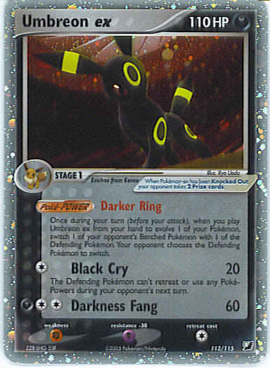 | Type | Darkness | | Pokemon serie | Unseen Forces | | Stadie | Stage 1 | | HP | 110 | | Sjældenhed | Ultra-Rare | | Tilbagetrækning | 1 | | Modstand | P | | Svaghed | F | | Kortnummer | 112 | | Evne | [C] Black Cry (20) The Defending Pokemon can't retreat or use any Poke-Powers during your opponent's next turn. [CCD] Darkness Fang (60) | | Evne2 | [C] Black Cry (20) The Defending Pokemon can't retreat or use any Poke-Powers during your opponent's next turn. [CCD] Darkness Fang (60) | | Kunstner | Ryo Ueda |