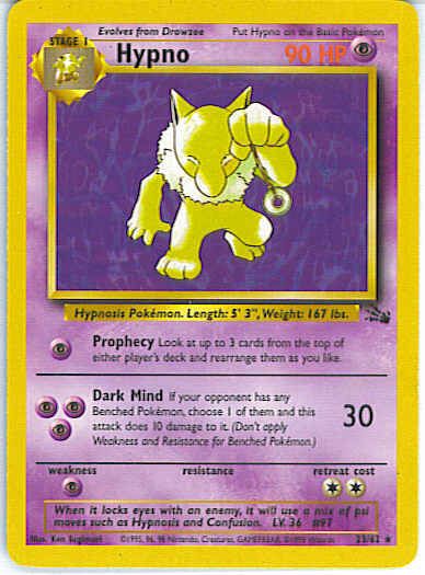 | Type | Psychic | | Pokemon serie | Fossil | | Stadie | Stage 1 | | HP | 90 | | Sjældenhed | Rare | | Tilbagetrækning | 2 | | Svaghed | P | | Kortnummer | 23 | | Evne |
