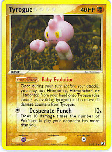 | Type | Fighting | | Pokemon serie | Unseen Forces | | Stadie | Basic | | HP | 40 | | Sjældenhed | Rare | | Tilbagetrækning | 1 | | Svaghed | P | | Kortnummer | 33 | | Evne |