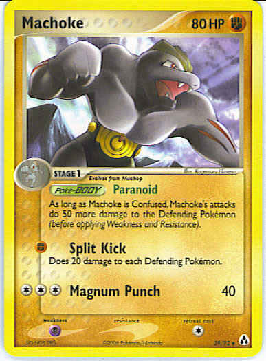 | Type | Fighting | | Pokemon serie | Legend Maker | | Stadie | Stage 1 | | HP | 80 | | Sjældenhed | Uncommon | | Tilbagetrækning | 1 | | Svaghed | P | | Kortnummer | 39 | | Evne | [F] Split Kick - Does 20 damage to each Defending Pokemon. [CCC] Magnum Punch (40) | | Evne2 | [F] Split Kick - Does 20 damage to each Defending Pokemon. [CCC] Magnum Punch (40) | | Kunstner | Kagemaru Himeno |