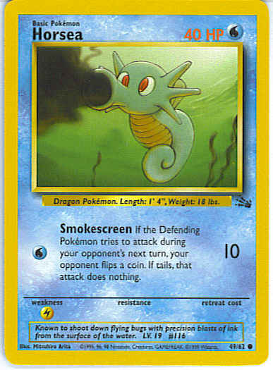 | Type | Water | | Pokemon serie | Fossil | | Stadie | Basic | | HP | 40 | | Sjældenhed | Common | | Svaghed | L | | Kortnummer | 49 | | Evne |