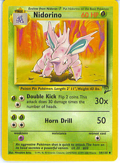 | Type | Grass | | Pokemon serie | Base Set 2 | | Stadie | Stage 1 | | HP | 60 | | Sjældenhed | Uncommon | | Tilbagetrækning | 1 | | Svaghed | P | | Kortnummer | 54 | | Evne |