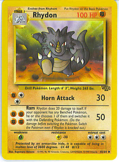 | Type | Fighting | | Pokemon serie | Jungle | | Stadie | Stage 1 | | HP | 100 | | Sjældenhed | Uncommon | | Tilbagetrækning | 3 | | Modstand | L | | Svaghed | G | | Kortnummer | 45 | | Evne |