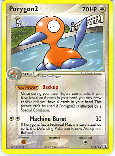 [CC] Machine Burst (30) If Porygon2 has a Technical Machine card attached to it, the Defending Pokemon is now Asleep and Burned.