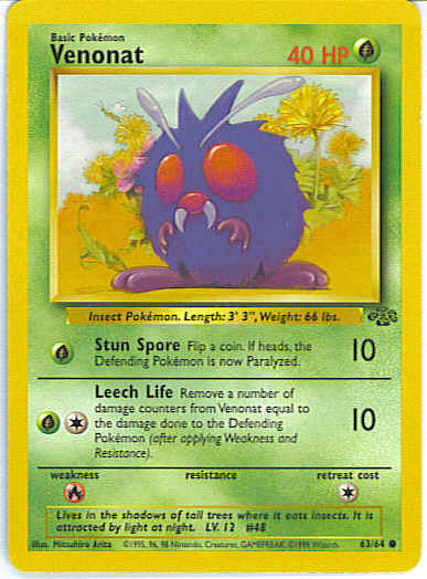 [CG] Leech Life (10) Remove a number of damage counters from Venonat equal to the damage done to the Defending Pokemon (after applying Weakness and Resistance).