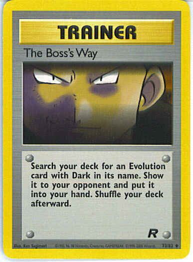 Evne Search your deck for an Evolution card with Dark in its name. Show it to your opponent and put it into your hand. Shuffle your deck afterward.