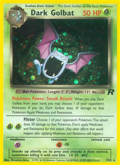 | Type | Grass | | Pokemon serie | Team Rocket | | Stadie | Stage 1 | | HP | 50 | | Sjældenhed | Rare | | Modstand | F | | Svaghed | P | | Kortnummer | 7 | | Evne |