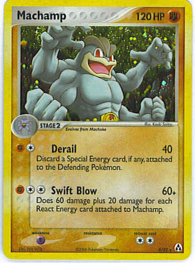 | Type | Fighting | | Pokemon serie | Legend Maker | | Stadie | Stage 2 | | HP | 120 | | Sjældenhed | Rare | | Tilbagetrækning | 2 | | Svaghed | P | | Kortnummer | 9 | | Evne |