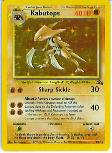 [FFFF] Absorb (40) Remove a number of damage counters from Kabutops equal to half the damage done to Defending Pokemon (after applying Weakness and Resistance) (rounded up to the nearest 10). If Kabutops has fewer damage counters than that, remove all of them.