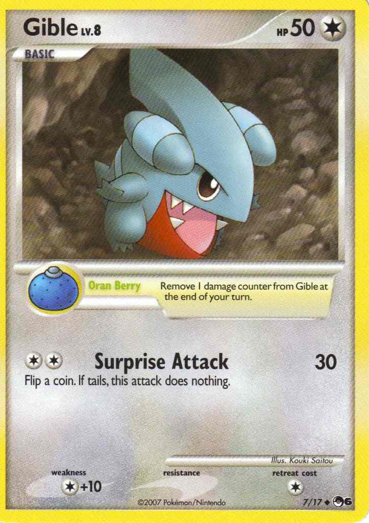 | Type | Colorless | | Pokemon serie | OP Series 6 | | Stadie | Basic | | HP | 50 | | Sjældenhed | Common | | Tilbagetrækning | 1 | | Svaghed | C+10 | | Kortnummer | 7 | | Evne |