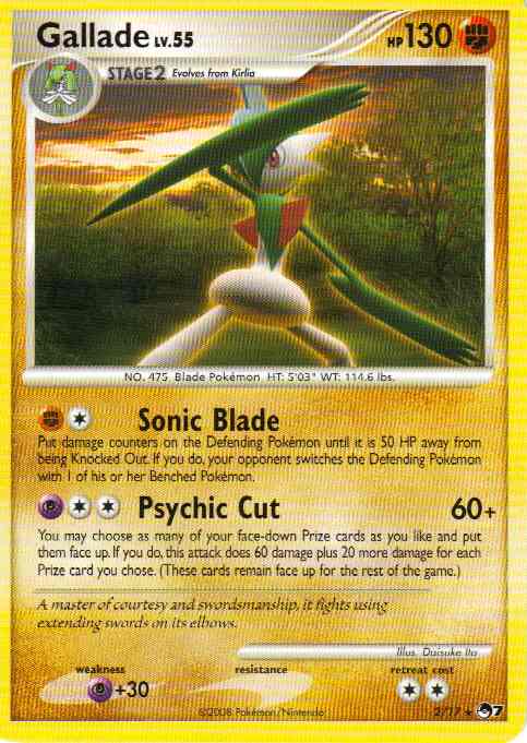 | | Evne2 | [CF] Sonic Blade - Put Damage counters on the Defending Pokemon until it is 50 HP away from being Knocked Out. If you do, your opponent switches the Defending Pokemon with 1 of his or her Benched Pokemon. [CCP] Psychic Cut (60+) You may choose as many of your face-down Prize cards as you like and put them face up. If you do, this attack does 60 damage plus 20 more damage for each Prize card you choose. (These cards remain face up for the rest of the game.)