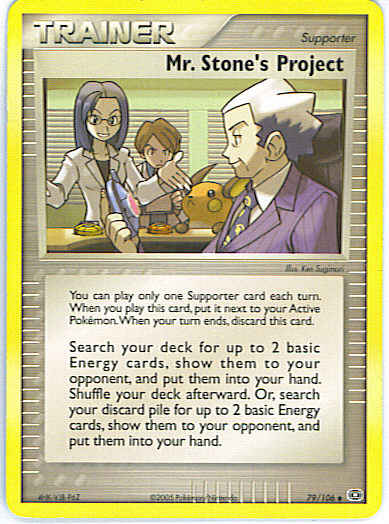 | Type | Trainer | | Pokemon serie | Emerald | | Stadie | Trainer (Supporter) | | Sjældenhed | Uncommon | | Kortnummer | 79 | | Evne |