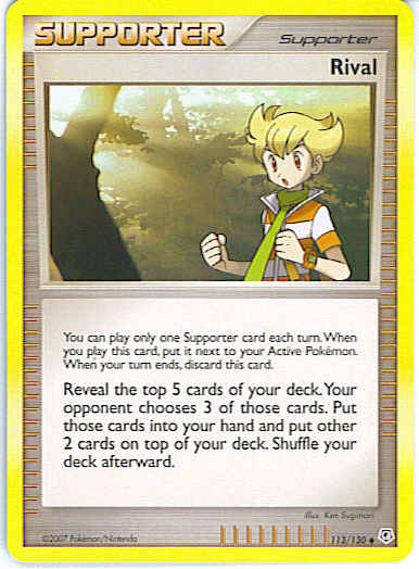 | Type | Trainer | | Pokemon serie | Diamond and Pearl | | Stadie | Supporter | | Sjældenhed | Uncommon | | Kortnummer | 113 | | Evne |