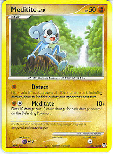 [F] Detect - Flip a coin. If heads, prevent all effects of an attack, including damage, done to Meditite during your opponent's next turn.