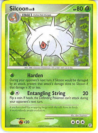 Evne [G] Harden - During your opponent's next turn, if Silcoon would be damaged by an attack, prevent that attack's damage done to Silcoon if that damage is 30 or less.