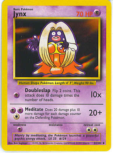 | Type | Psychic | | Pokemon serie | Base | | Stadie | Basic | | HP | 70 | | Sjældenhed | Uncommon | | Tilbagetrækning | 2 | | Svaghed | P | | Kortnummer | 31 | | Evne |