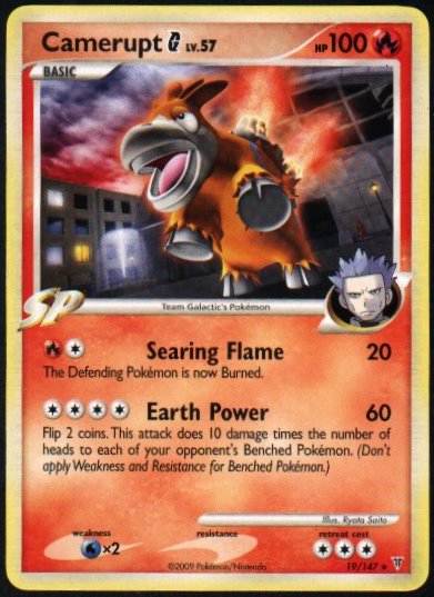 | Type | Fire | | Pokemon serie | Supreme Victors | | Stadie | Basic | | HP | 100 | | Sjældenhed | Rare | | Tilbagetrækning | 3 | | Svaghed | Wx2 | | Kortnummer | 19 | | Evne |