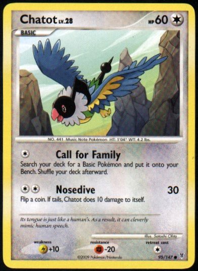 [CC] Nosedive (30) Flip a coin. If tails, Chatot does 10 damage to itself.