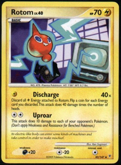 [L] Discharge (40x) Discard all [L] Energy attached to Rotom. Flip a coin for each Energy card you discarded. This attack does 40 damage times the number of heads.