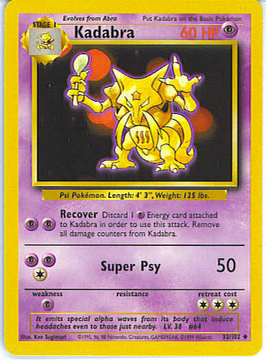 [PP] Recover - Discard 1 Psychic Energy card to use this attack. Remove all damage counters from Kadabra.