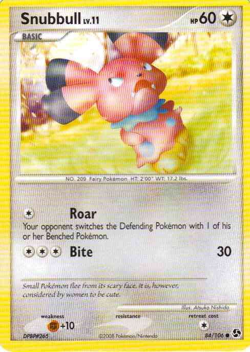 | Type | Colorless | | Pokemon serie | Great Encounters | | Stadie | Basic | | HP | 60.0 | | Sjældenhed | Common | | Tilbagetrækning | 1.0 | | Svaghed | F+10 | | Kortnummer | 84 | | Evne |