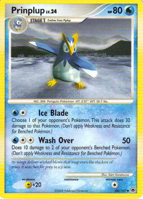 | Type | Water | | Pokemon serie | Majestic Dawn | | Stadie | Stage 1 | | HP | 80.0 | | Sjældenhed | Uncommon | | Tilbagetrækning | 1.0 | | Svaghed | L+20 | | Kortnummer | 44 | | Evne |