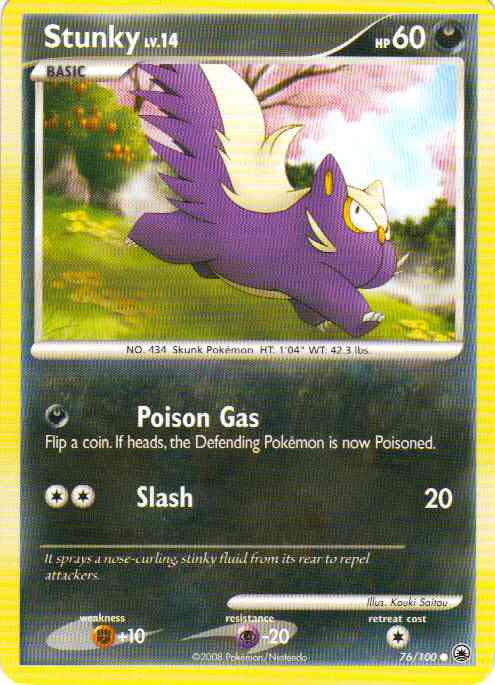 | Type | Darkness | | Pokemon serie | Majestic Dawn | | Stadie | Basic | | HP | 60.0 | | Sjældenhed | Common | | Tilbagetrækning | 1.0 | | Modstand | P-20 | | Svaghed | F+10 | | Kortnummer | 76 | | Evne |