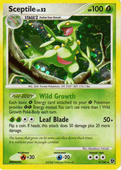 | Type | Grass | | Pokemon serie | Great Encounters | | Stadie | Stage 2 | | HP | 100.0 | | Sjældenhed | Rare | | Tilbagetrækning | 3.0 | | Modstand | W-20 | | Svaghed | R+30 | | Kortnummer | 8 | | Evne |