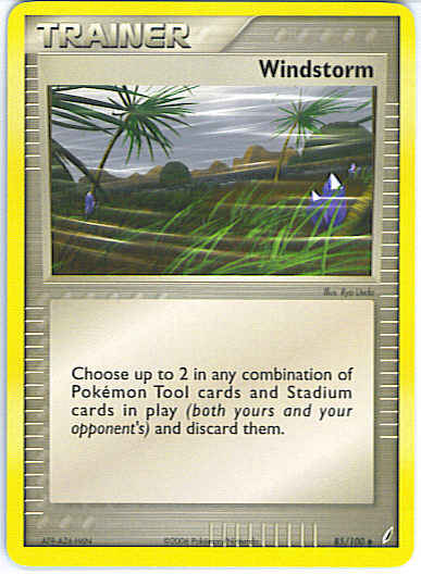 Choose up to 2 in any combination of Pokemon Tool cards and Stadium cards in play (both yours and your opponent's) and discard them.