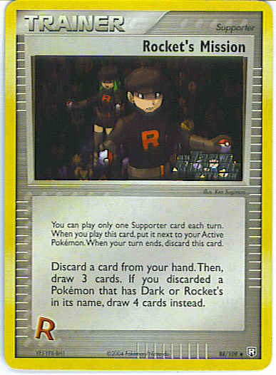 Discard a card from your hand. Then, draw 3 cards. If you discarded a Pokemon that has Dark or Rocket's in its name, draw 4 cards instead.