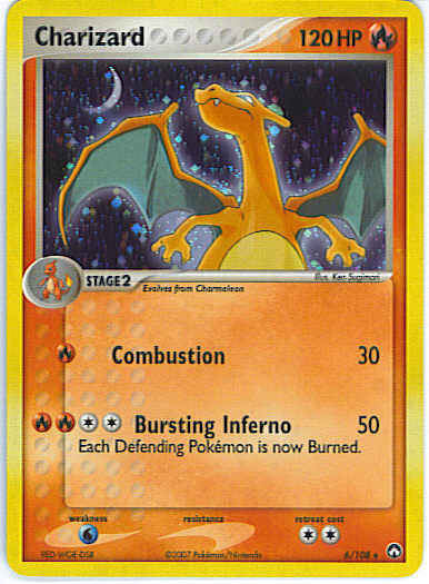 | Type | Fire | | Pokemon serie | Power Keepers | | Stadie | Stage 2 | | HP | 120 | | Sjældenhed | Rare | | Tilbagetrækning | 2 | | Svaghed | W | | Kortnummer | 6 | | Evne |