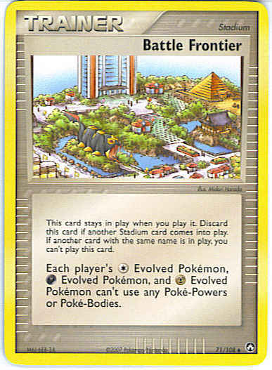 | Type | Trainer | | Pokemon serie | Power Keepers | | Stadie | Trainer (Stadium) | | Sjældenhed | Uncommon | | Kortnummer | 71 | | Evne |