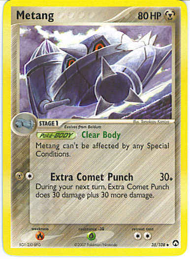 | Type | Metal | | Pokemon serie | Power Keepers | | Stadie | Stage 1 | | HP | 80 | | Sjældenhed | Uncommon | | Tilbagetrækning | 2 | | Modstand | G | | Svaghed | R | | Kortnummer | 35 | | Evne |