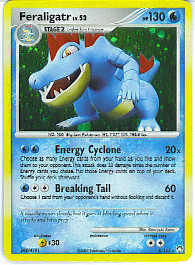 [WW] Energy Cyclone (20x) Choose as many Energy cards from your hand as you like and show them to your opponent. This attack does 20 damage times the number of Energy cards you chose. Put those Energy cards on top of your deck. Shuffle your deck afterward.