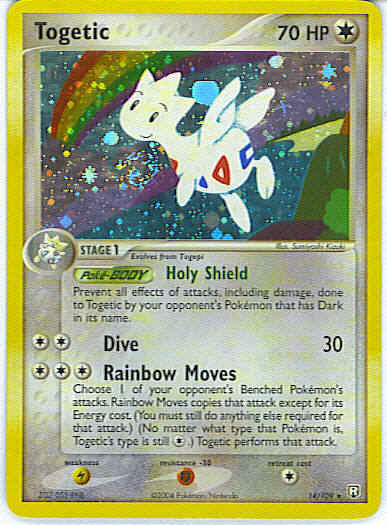 Evne of attacks, including damage, done to Togetic by your opponent's Pokemon that has Dark in its name. (Poke-BODY)