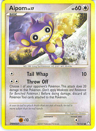 | Type | Colorless | | Pokemon serie | Mysterious Treasures | | Stadie | Basic | | HP | 60 | | Sjældenhed | Common | | Tilbagetrækning | 1 | | Svaghed | F+10 | | Kortnummer | 70 | | Evne |