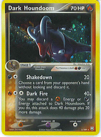| Type | Darkness Fire | | Pokemon serie | Team Rocket Returns | | Stadie | Stage 1 | | HP | 70 | | Sjældenhed | Rare | | Tilbagetrækning | 1 | | Modstand | P | | Svaghed | F | | Kortnummer | 5 | | Evne |