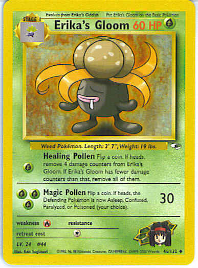 [G] Healing Pollen - Flip a coin. If heads, remove 4 damage counters from Erika's Gloom. If Erika's Gloom has fewer damage counters than that, remove all of them.