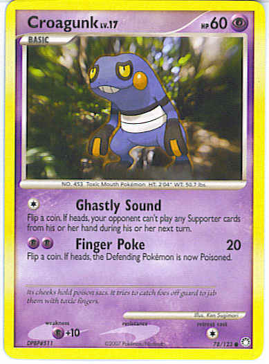 [PP] Finger Poke (20) Flip a coin. If heads, the Defending Pokemon is now Poisoned.