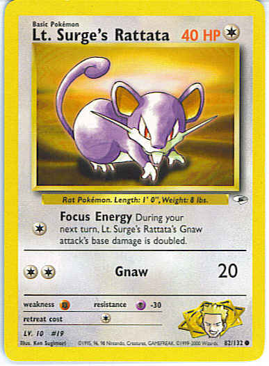 [C] Focus Energy - During your next turn, Lt. Surge's Rattata's Gnaw attack's base damage is doubled.