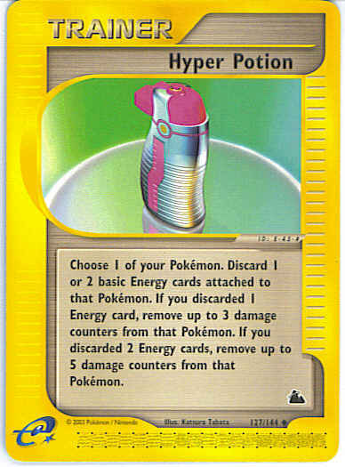 | Type | Trainer | | Pokemon serie | Skyridge | | Stadie | Trainer | | Sjældenhed | Uncommon | | Kortnummer | 127 | | Evne | Choose 1 of your Pokemon. Discard 1 or 2 basic Energy cards attached to that Pokemon. If you discarded 1 Energy card, remove up to 3 damage counters from that Pokemon. If you discarded 2 Energy cards, remove up to 5 damage counters from that Pokemon.