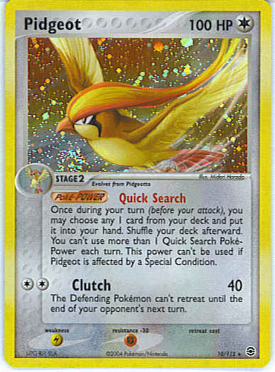| Type | Colorless | | Pokemon serie | Fire Red Leaf Green | | Stadie | Stage 2 | | HP | 100 | | Sjældenhed | Rare | | Modstand | F | | Svaghed | L | | Kortnummer | 10 | | Evne |