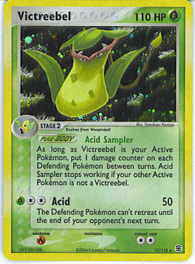 | Type | Grass | | Pokemon serie | Fire Red Leaf Green | | Stadie | Stage 2 | | HP | 110 | | Sjældenhed | Rare | | Tilbagetrækning | 2 | | Svaghed | R | | Kortnummer | 17 | | Evne |