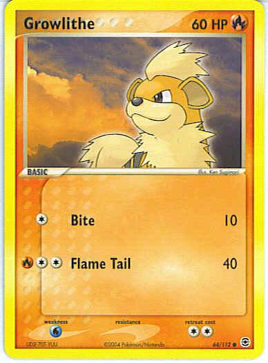 | Type | Fire | | Pokemon serie | Fire Red Leaf Green | | Stadie | Basic | | HP | 60 | | Sjældenhed | Common | | Tilbagetrækning | 2 | | Svaghed | W | | Kortnummer | 64 | | Evne | [C] Bite (10) [CCR] Flame Tail (40) | | Evne2 | [C] Bite (10) [CCR] Flame Tail (40) | | Kunstner | Ken Sugimori |