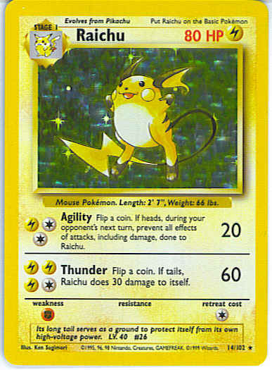 [CCL] Agility (20) Flip a coin. If heads, during opponent's next turn, prevent all effects of attacks, including damage, done to Raichu.
