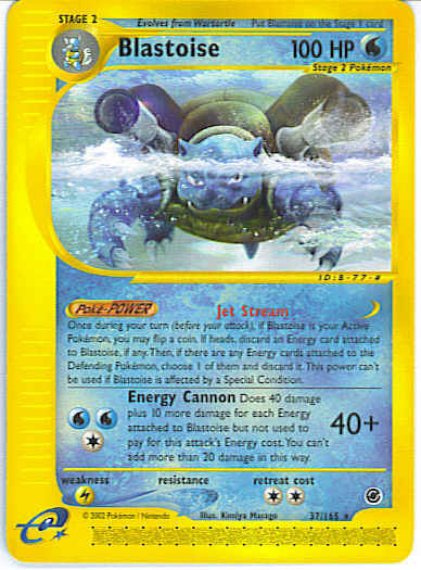 [CWW] Energy Cannon (40+) Does 40 damage plus 10 more damage for each Energy attached to Blastoise but not used to pay for this attack's Energy cost. You can't add more than 20 damage in this way.
