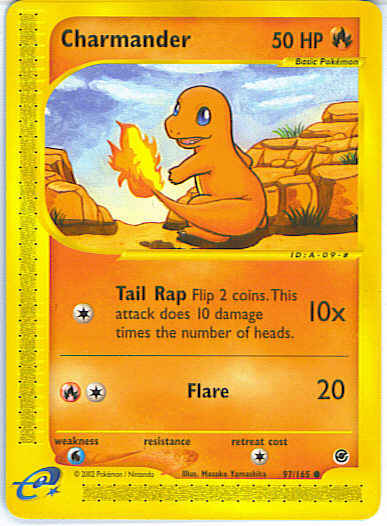 | Type | Fire | | Pokemon serie | Expedition | | Stadie | Basic | | HP | 50 | | Sjældenhed | Common | | Tilbagetrækning | 1 | | Svaghed | W | | Kortnummer | 97 | | Evne |