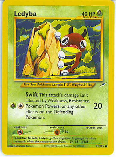 | Type | Grass | | Pokemon serie | Neo Destiny | | Stadie | Basic | | HP | 40 | | Sjældenhed | Common | | Modstand | F | | Svaghed | R | | Kortnummer | 71 | | Evne |
