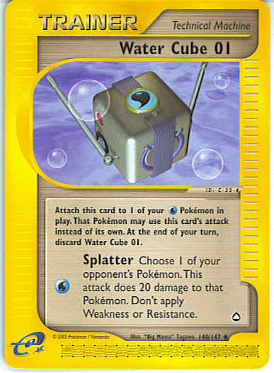 | Type | Trainer | | Pokemon serie | Aquapolis | | Stadie | Trainer (Technical Machine) | | Sjældenhed | Uncommon | | Kortnummer | 140 | | Evne |